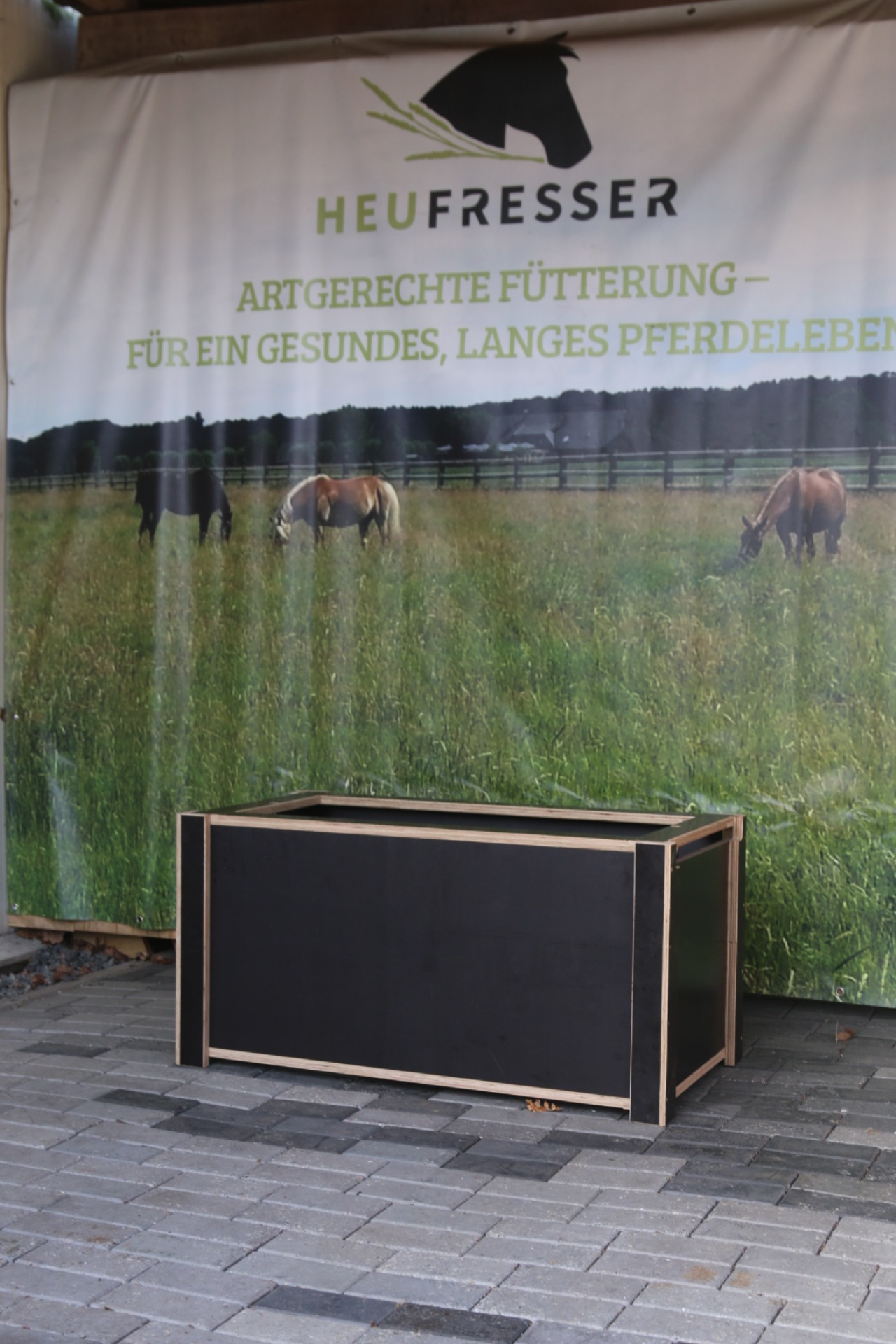 Jetzt können Ihre Pferde das Heu in ihrer natürlichen Haltung fressen, ohne dabei das ganze Heu zu verteilen, zu zertrampeln oder gar vollzukoten.