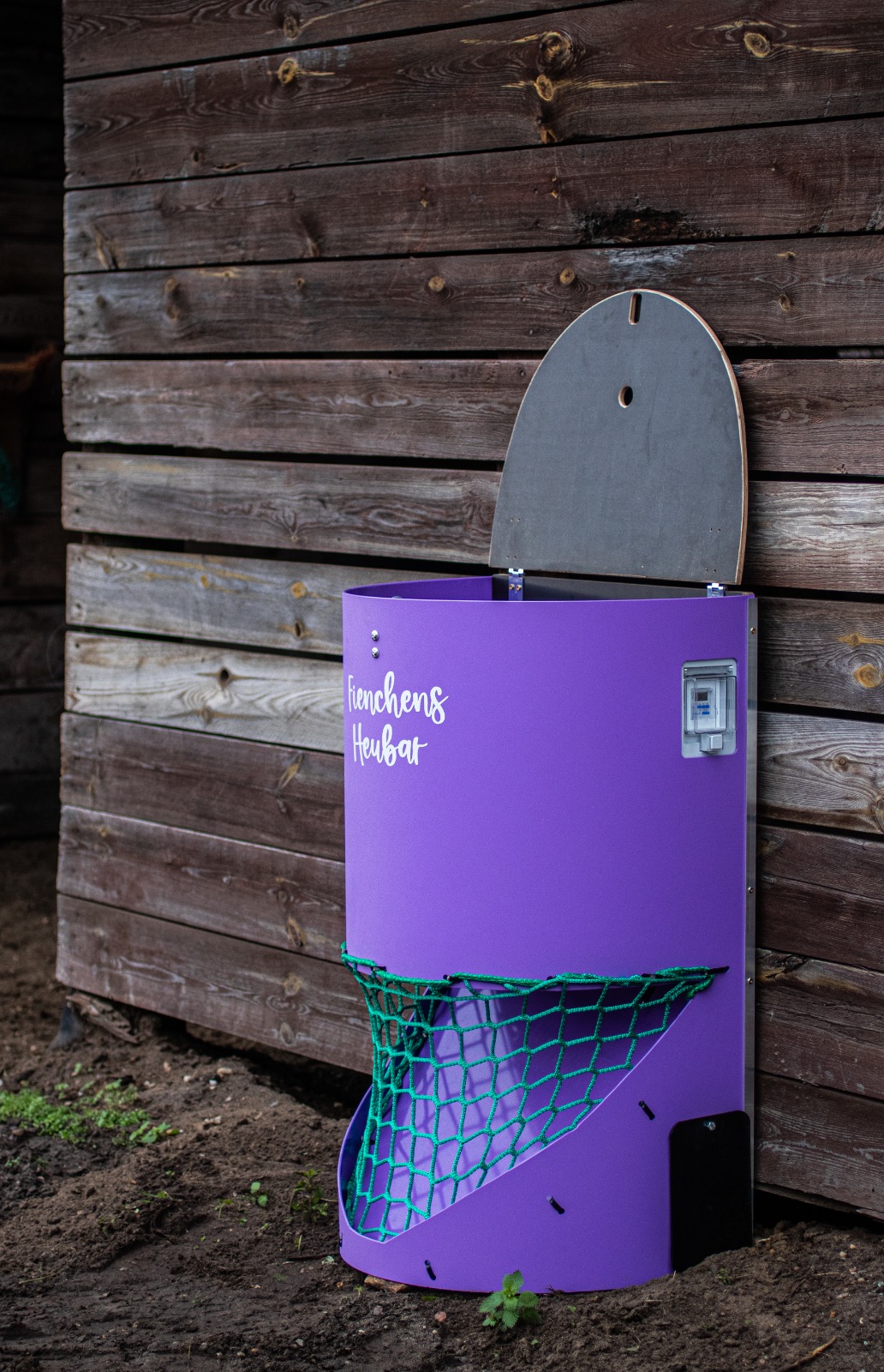 Heuspender Zeitgesteuerte Portionsraufe flieder 230 Volt Standard Hausstrom Fressgitter Lochgröße 70/50mm gemischt